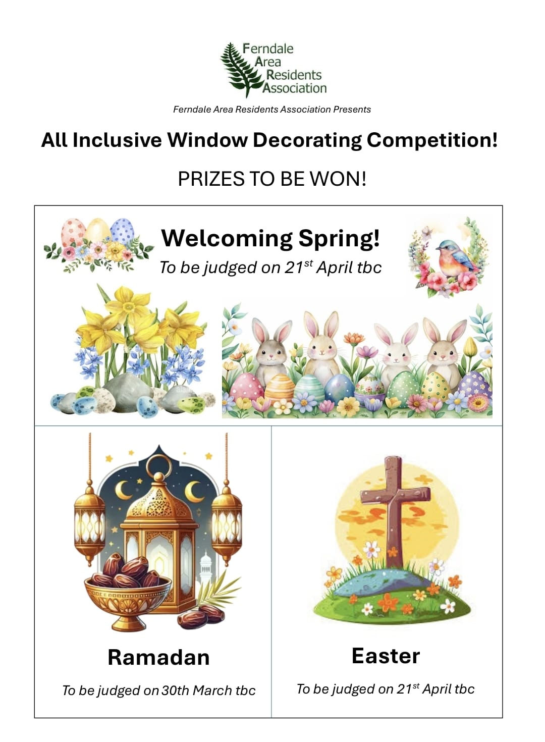 The ever popular window decorating competition is back for spring and we have THREE wonderful celebrations to decorate for.